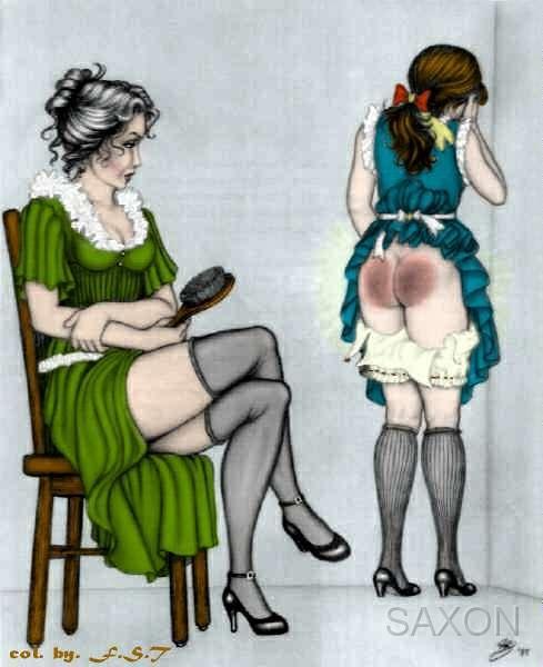 I finished the spatula spanks with a hurried flurry of sharp hard spanks to both my cheeks and thighs and finally I placed the spatula on the bed and stood up. I looked in the mirror behind me to inspect my bottom and I was rewarded with twin bruises forming in the centre of both cheeks. I fingered the bruises lightly, I stroked my nails across the surface of my bottom, I squeezed my cheeks a little and then I lifted my left leg and placed my foot on the bed exposing my wet pussy to the mirror. I quickly glanced over my shoulder to make sure the curtains were properly drawn and then ran my finger down my pussy lips, I didn’t push past them though, I stuck to the letter of the punishment. No orgasm had to mean no play or stroking. I did run my finger to my little butt hole, it was almost a virgin area the only visitor ever having been Mrs Wilson the other week and that was a very brief visit. I had so enjoyed the sensations she had created by just inserting her finger into the rim of my butt and I tried it myself now. Ooh… That was definitely something that was going to require further investigation when the ban was lifted. Sighing a little I put my raised foot back down on the floor and I walked over to the corner for 5 minutes of corner time. My panties were around one ankle so my usual ungainly stagger was not present and I actually missed it. I bent down and popped my panties back over my other foot and stood with them stretched between my two ankles. I felt better and a little silly for making a fuss about it. I used the emotion to chastise myself a little and I did my corner time, safe in the knowledge I was unobserved this time.